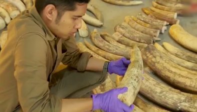 聲明稱,新加坡執法人員21日檢查從剛果民主共和國運往越南的三個集裝箱。據悉,提貨單當時申報集裝箱裝的是木頭,但經檢查,執法人員在其中一個集裝箱發現穿山甲鱗片和象牙。其中截獲的132袋象牙,總重量約8.8噸,市值約1760萬元,是新加坡查獲的最大批走私象牙,預計來自近300隻非洲象。