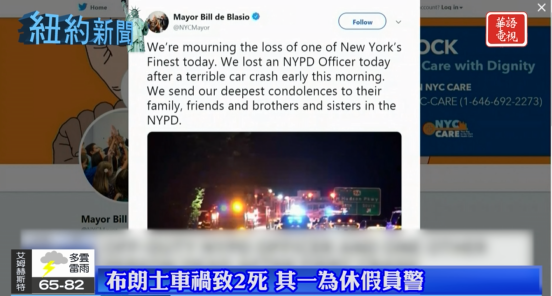 另一位32歲的乘客Oscar Monegro,也在車禍中喪生。市長白思豪在推特上表示,向紐約警察局喪生警員的家人、朋友和兄弟姐妹致以最深切的哀悼。
