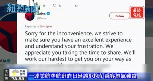 達美航班一架由肯尼迪飛至邁阿密的航班昨天原本應該下午三點起飛,但據稱因為等候地面工作人員,導致飛機遲遲不能起飛,在停機坪足足等了近8個小時。由機上乘客拍攝的畫面顯示,飛機內的乘客由於等候時間太久已經逐漸失去耐心,有人開始大叫,機場方面不得不出動警察登機來平復乘客的怨氣。達美航空公司方面也對乘客表達了歉意,並稱會盡快起飛。
