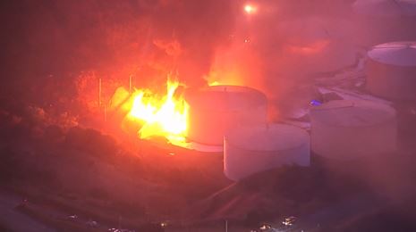 三藩市一間煉油廠的乙醇儲存缸,昨日發生爆炸引起大火。事件仍在調查中,未知是否與地震有關。